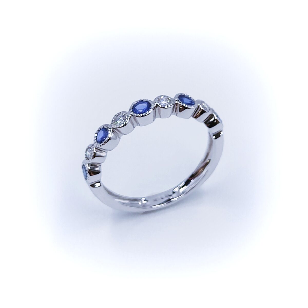 Découvrez nos créations et collections d’alliances composées de diamants blancs, noirs, champagne, et de pierres précieuses tel que le saphir.