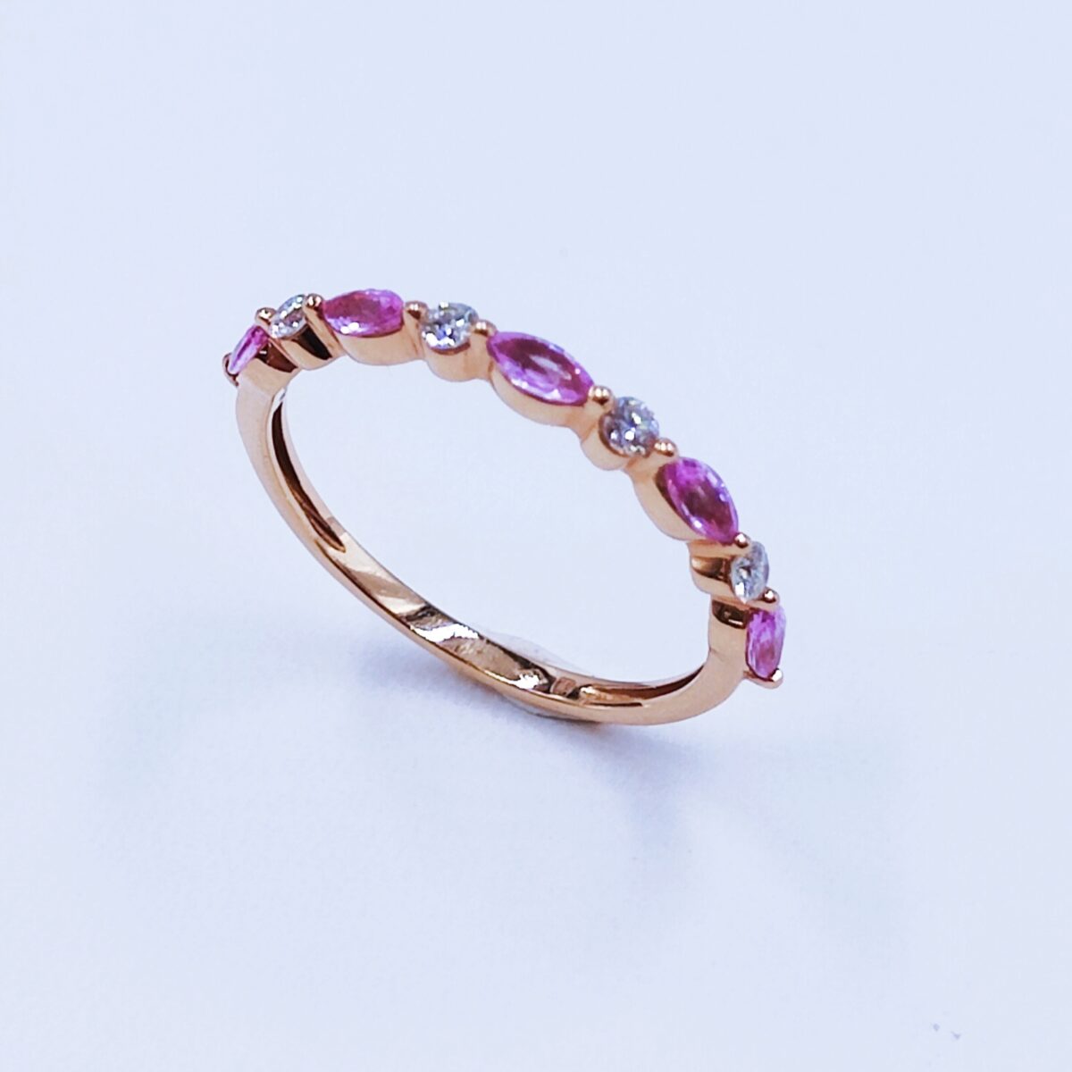 Le saphir rose : romantisme et féminité. Il se marie tout aussi bien aux diamants sur or blanc que sur une monture en or rose.