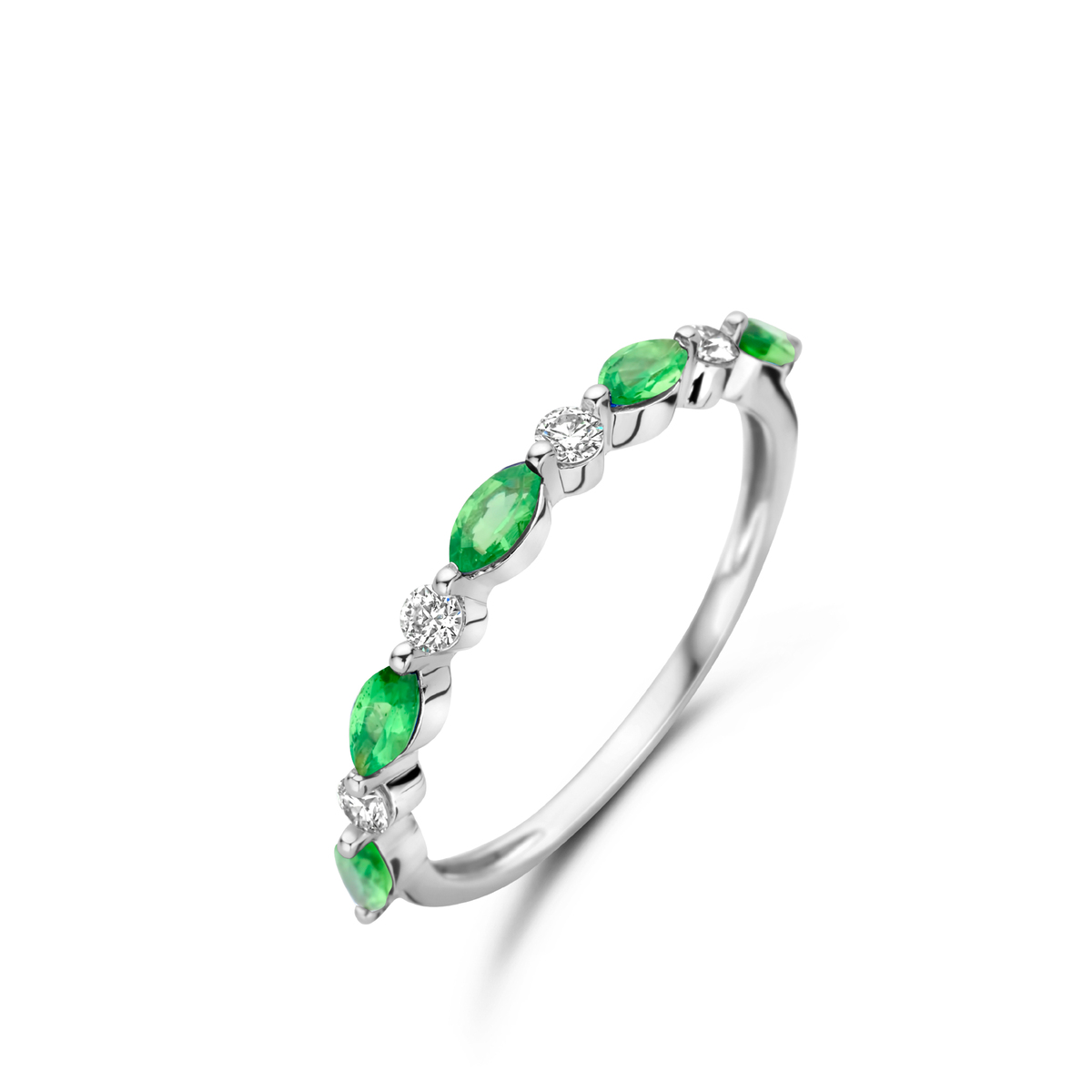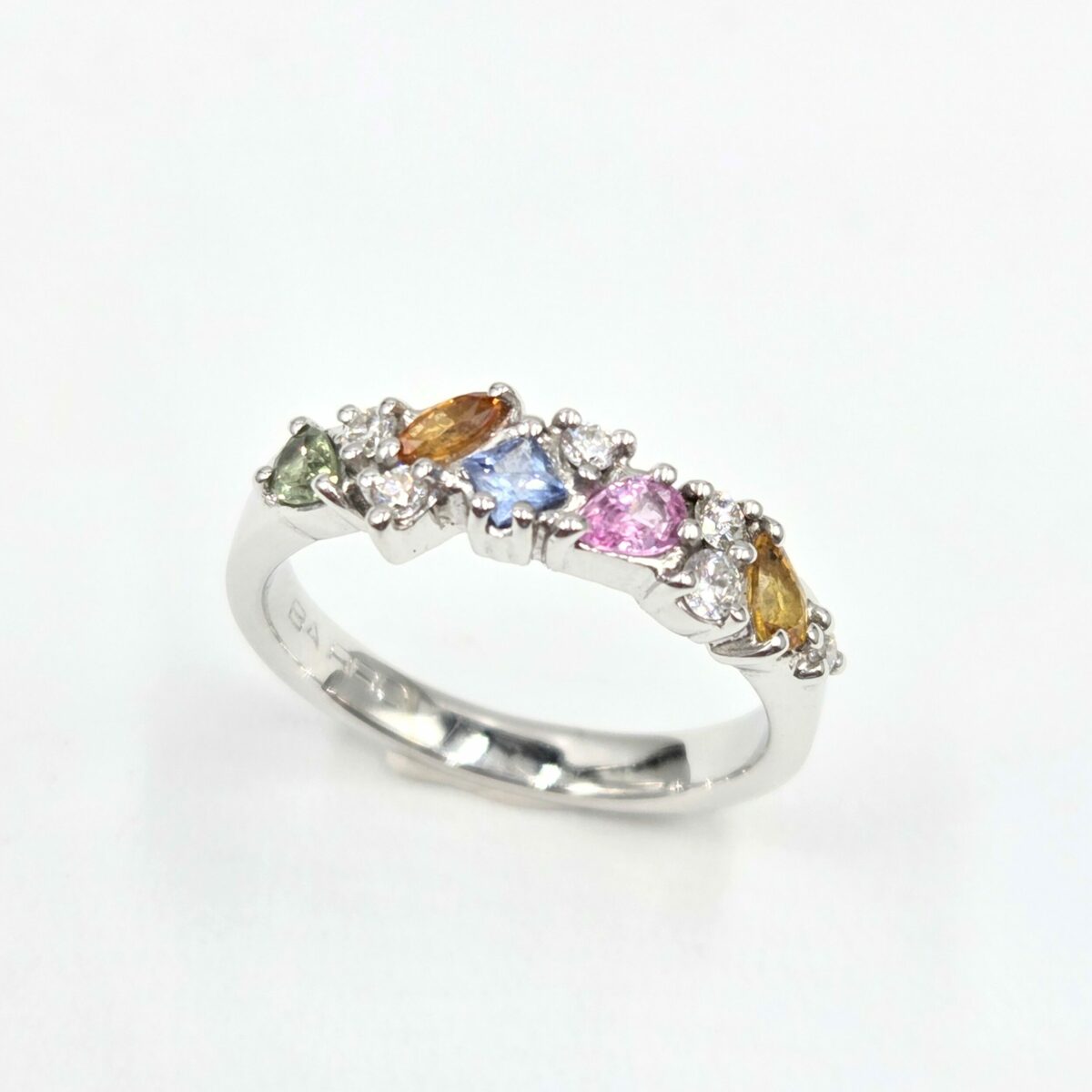 Osez la couleur avec nos alliances serties de diamants et de pierres précieuses de couleur.